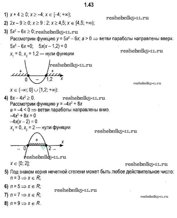 Готовая домашняя работа с ответами по Алгебре за 11 класс Кузнецова, Муравьева, Шнеперман, Ящин Учебник Народная асвета 2015 - Глава 1 1.43