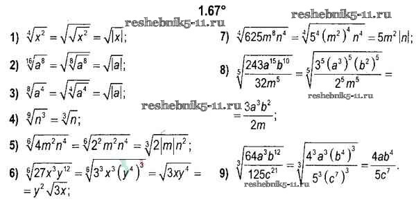Готовая домашняя работа с ответами по Алгебре за 11 класс Кузнецова, Муравьева, Шнеперман, Ящин Учебник Народная асвета 2015 - Глава 1 1.67