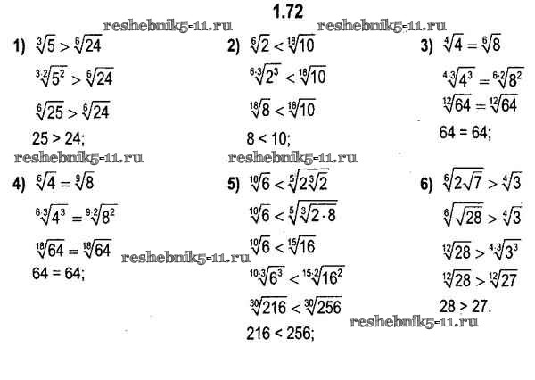 Готовая домашняя работа с ответами по Алгебре за 11 класс Кузнецова, Муравьева, Шнеперман, Ящин Учебник Народная асвета 2015 - Глава 1 1.72