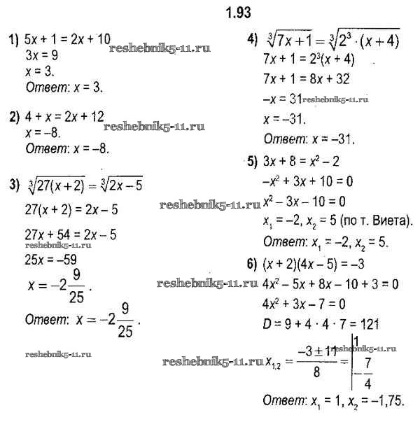 Готовая домашняя работа с ответами по Алгебре за 11 класс Кузнецова, Муравьева, Шнеперман, Ящин Учебник Народная асвета 2015 - Глава 1 1.93