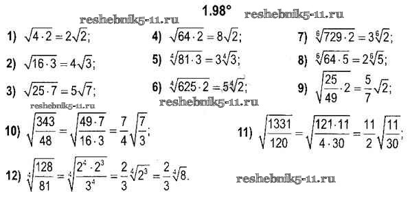Готовая домашняя работа с ответами по Алгебре за 11 класс Кузнецова, Муравьева, Шнеперман, Ящин Учебник Народная асвета 2015 - Глава 1 1.98
