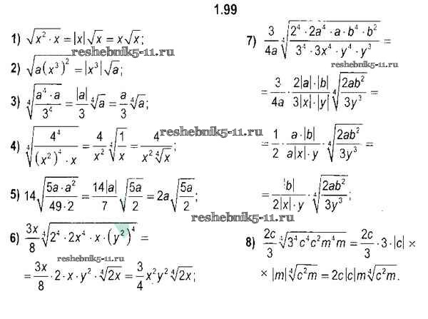 Готовая домашняя работа с ответами по Алгебре за 11 класс Кузнецова, Муравьева, Шнеперман, Ящин Учебник Народная асвета 2015 - Глава 1 1.99