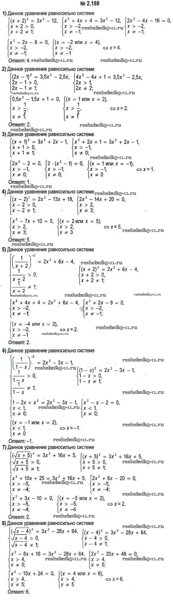 Готовая домашняя работа с ответами по Алгебре за 11 класс Кузнецова, Муравьева, Шнеперман, Ящин Учебник Народная асвета 2015 - Глава 2 2.188