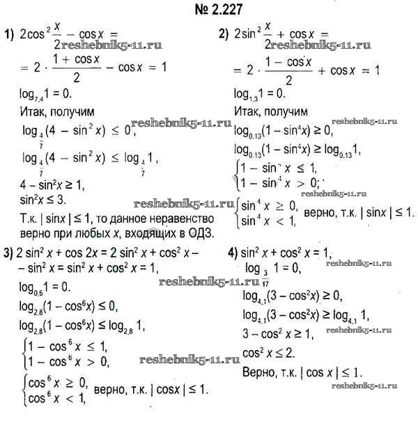 Готовая домашняя работа с ответами по Алгебре за 11 класс Кузнецова, Муравьева, Шнеперман, Ящин Учебник Народная асвета 2015 - Глава 2 2.227