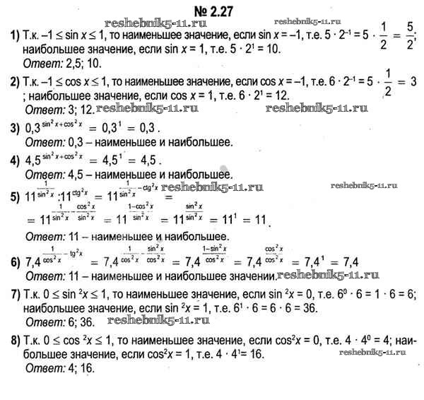 Готовая домашняя работа с ответами по Алгебре за 11 класс Кузнецова, Муравьева, Шнеперман, Ящин Учебник Народная асвета 2015 - Глава 2 2.27