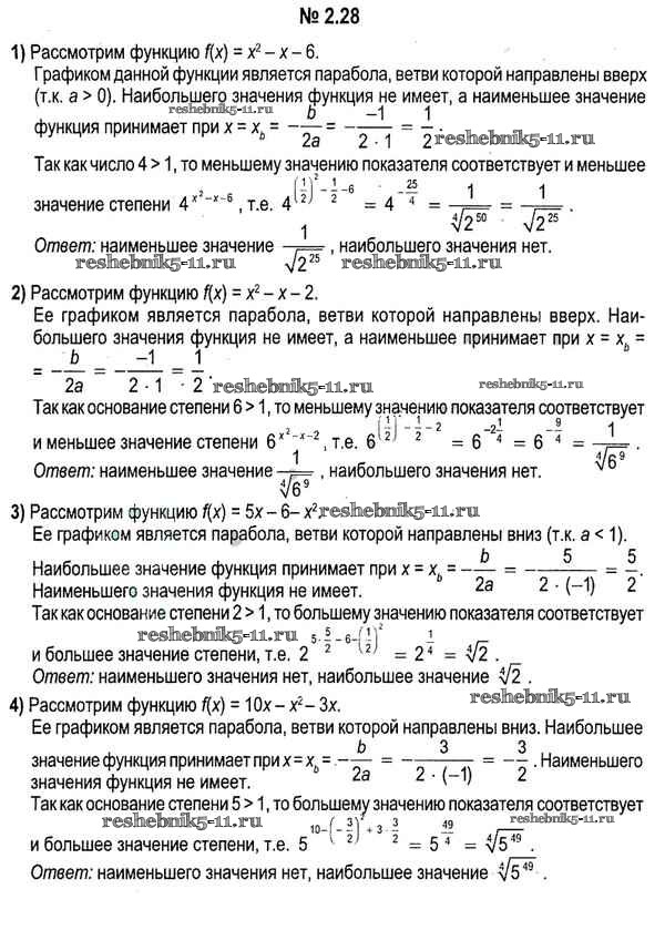 Готовая домашняя работа с ответами по Алгебре за 11 класс Кузнецова, Муравьева, Шнеперман, Ящин Учебник Народная асвета 2015 - Глава 2 2.28