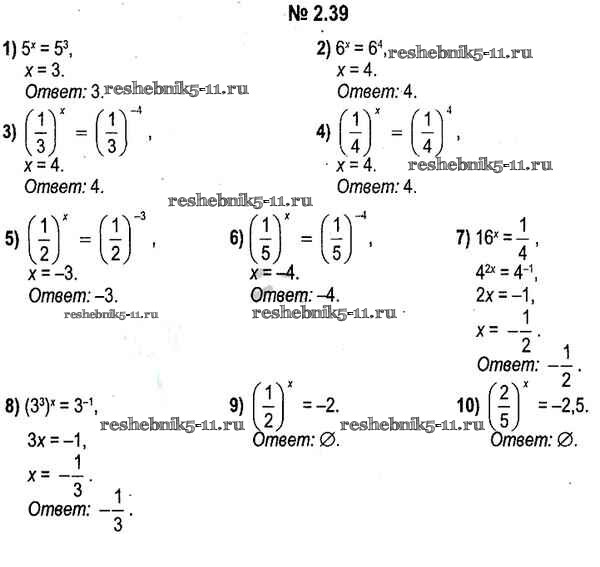 Готовая домашняя работа с ответами по Алгебре за 11 класс Кузнецова, Муравьева, Шнеперман, Ящин Учебник Народная асвета 2015 - Глава 2 2.39