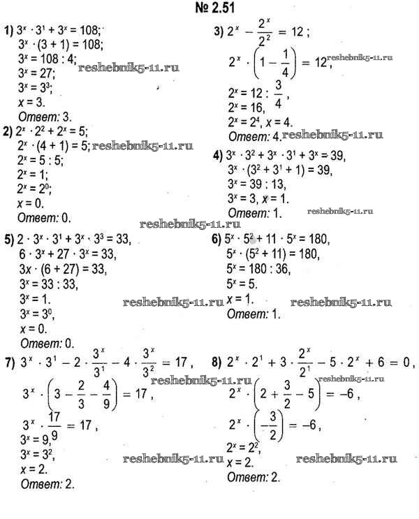 Готовая домашняя работа с ответами по Алгебре за 11 класс Кузнецова, Муравьева, Шнеперман, Ящин Учебник Народная асвета 2015 - Глава 2 2.51