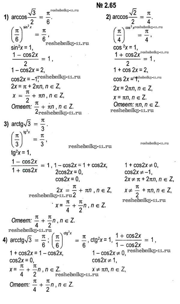 Готовая домашняя работа с ответами по Алгебре за 11 класс Кузнецова, Муравьева, Шнеперман, Ящин Учебник Народная асвета 2015 - Глава 2 2.65