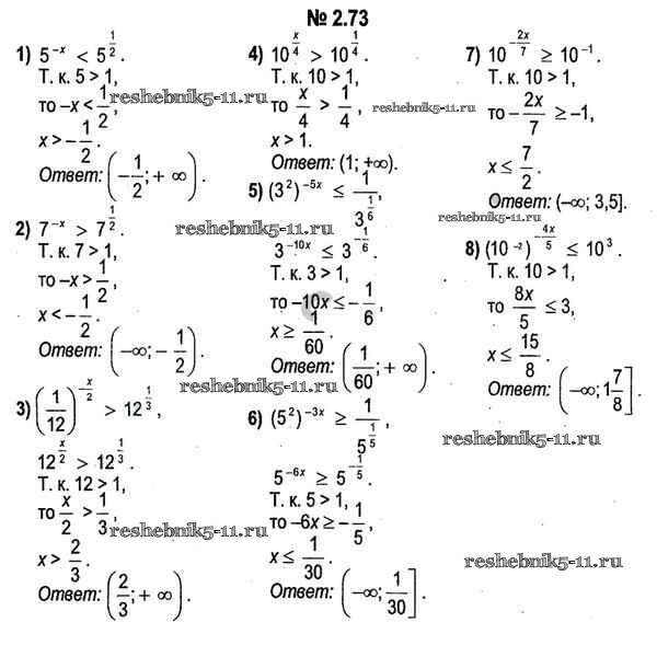 Готовая домашняя работа с ответами по Алгебре за 11 класс Кузнецова, Муравьева, Шнеперман, Ящин Учебник Народная асвета 2015 - Глава 2 2.73