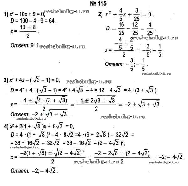 Готовая домашняя работа с ответами по Алгебре за 11 класс Кузнецова, Муравьева, Шнеперман, Ящин Учебник Народная асвета 2015 - Повторение 115