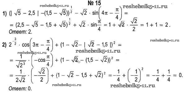 Готовая домашняя работа с ответами по Алгебре за 11 класс Кузнецова, Муравьева, Шнеперман, Ящин Учебник Народная асвета 2015 - Повторение 15