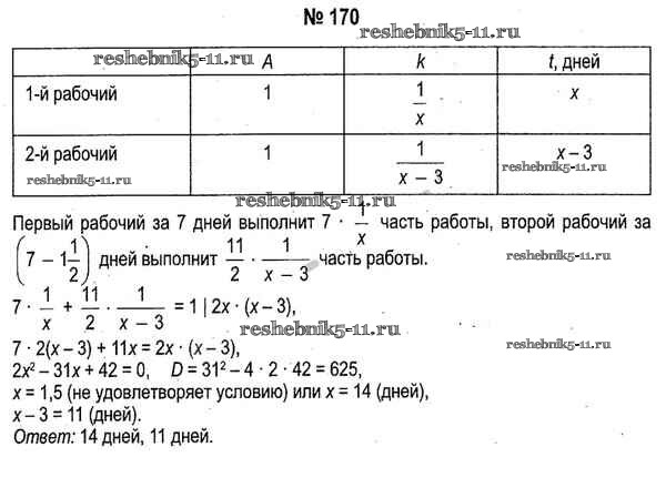 Готовая домашняя работа с ответами по Алгебре за 11 класс Кузнецова, Муравьева, Шнеперман, Ящин Учебник Народная асвета 2015 - Повторение 170