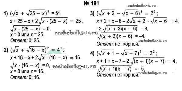 Готовая домашняя работа с ответами по Алгебре за 11 класс Кузнецова, Муравьева, Шнеперман, Ящин Учебник Народная асвета 2015 - Повторение 191