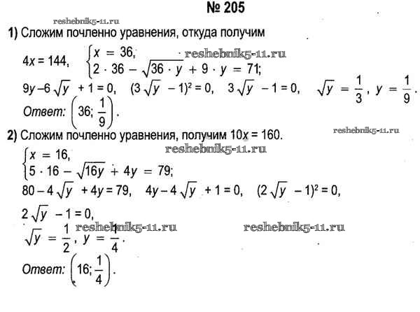 Готовая домашняя работа с ответами по Алгебре за 11 класс Кузнецова, Муравьева, Шнеперман, Ящин Учебник Народная асвета 2015 - Повторение 205