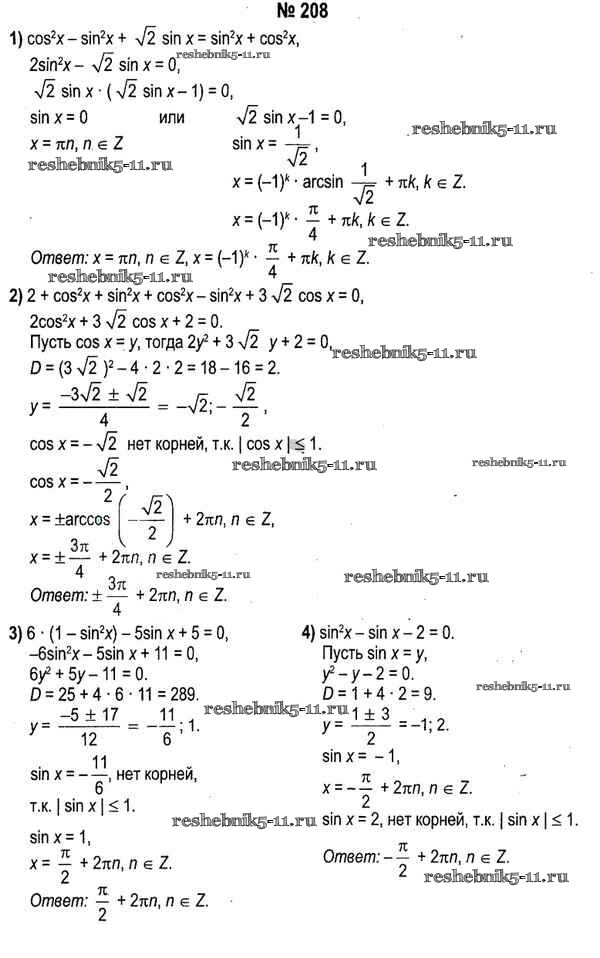 Готовая домашняя работа с ответами по Алгебре за 11 класс Кузнецова, Муравьева, Шнеперман, Ящин Учебник Народная асвета 2015 - Повторение 208
