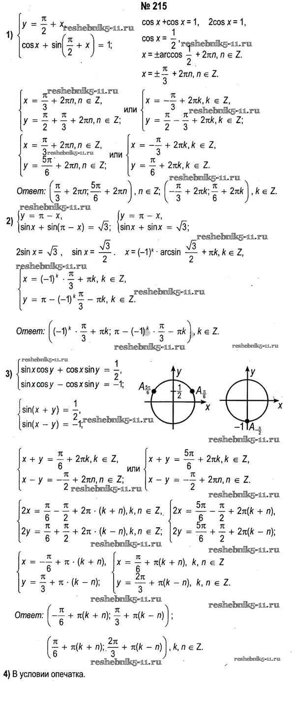 Готовая домашняя работа с ответами по Алгебре за 11 класс Кузнецова, Муравьева, Шнеперман, Ящин Учебник Народная асвета 2015 - Повторение 215
