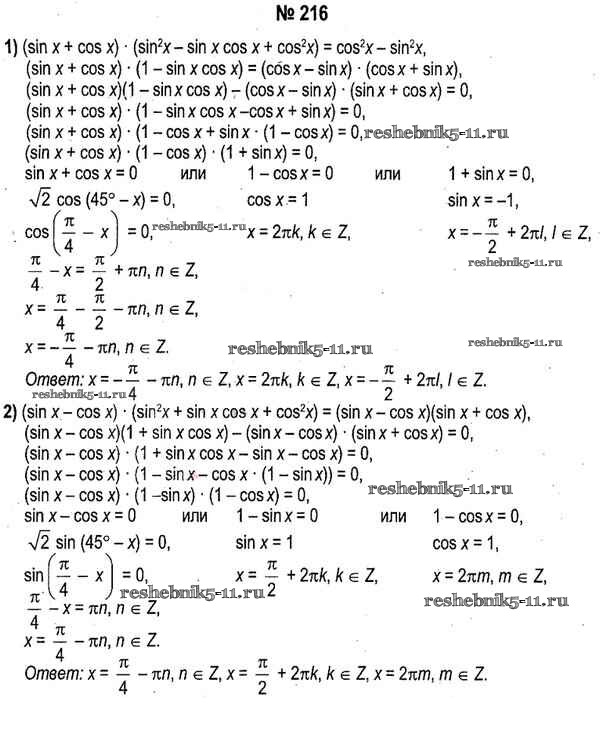 Готовая домашняя работа с ответами по Алгебре за 11 класс Кузнецова, Муравьева, Шнеперман, Ящин Учебник Народная асвета 2015 - Повторение 216