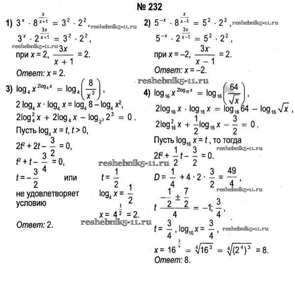 Готовая домашняя работа с ответами по Алгебре за 11 класс Кузнецова, Муравьева, Шнеперман, Ящин Учебник Народная асвета 2015 - Повторение 232