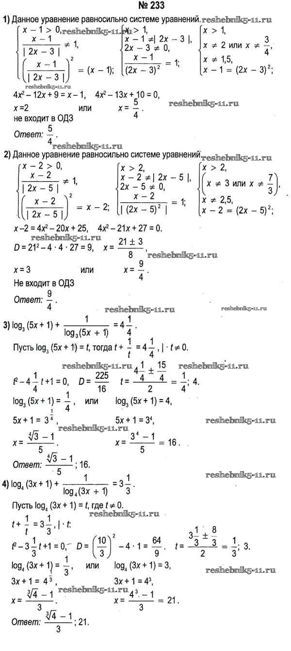 Готовая домашняя работа с ответами по Алгебре за 11 класс Кузнецова, Муравьева, Шнеперман, Ящин Учебник Народная асвета 2015 - Повторение 233