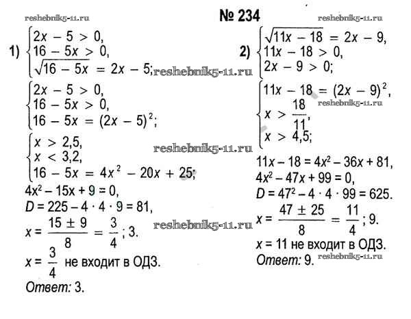Готовая домашняя работа с ответами по Алгебре за 11 класс Кузнецова, Муравьева, Шнеперман, Ящин Учебник Народная асвета 2015 - Повторение 234