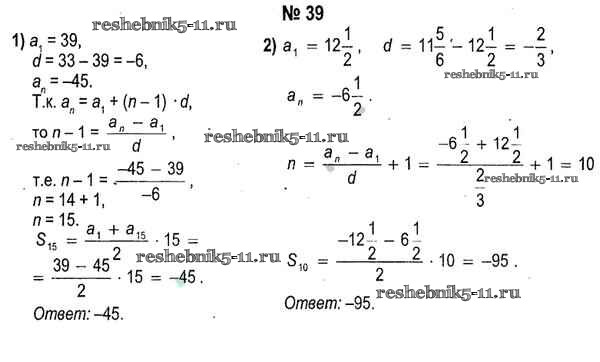 Готовая домашняя работа с ответами по Алгебре за 11 класс Кузнецова, Муравьева, Шнеперман, Ящин Учебник Народная асвета 2015 - Повторение 39