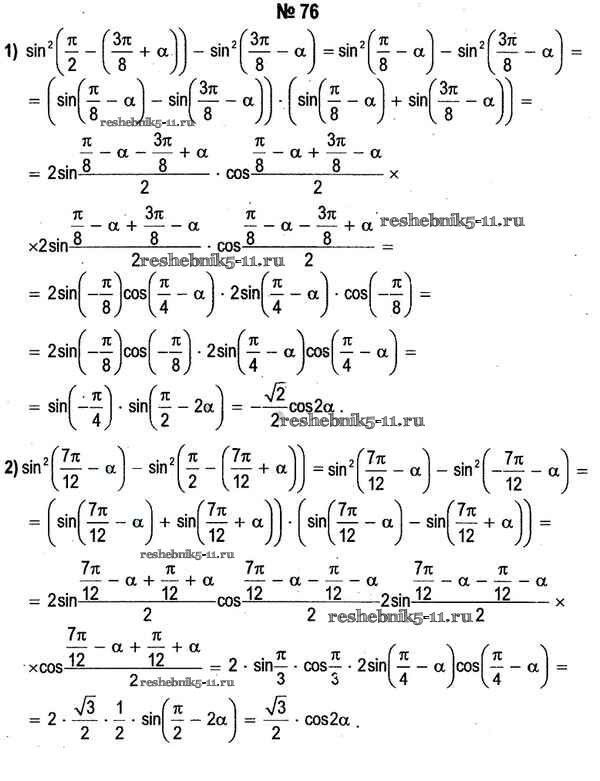 Готовая домашняя работа с ответами по Алгебре за 11 класс Кузнецова, Муравьева, Шнеперман, Ящин Учебник Народная асвета 2015 - Повторение 76