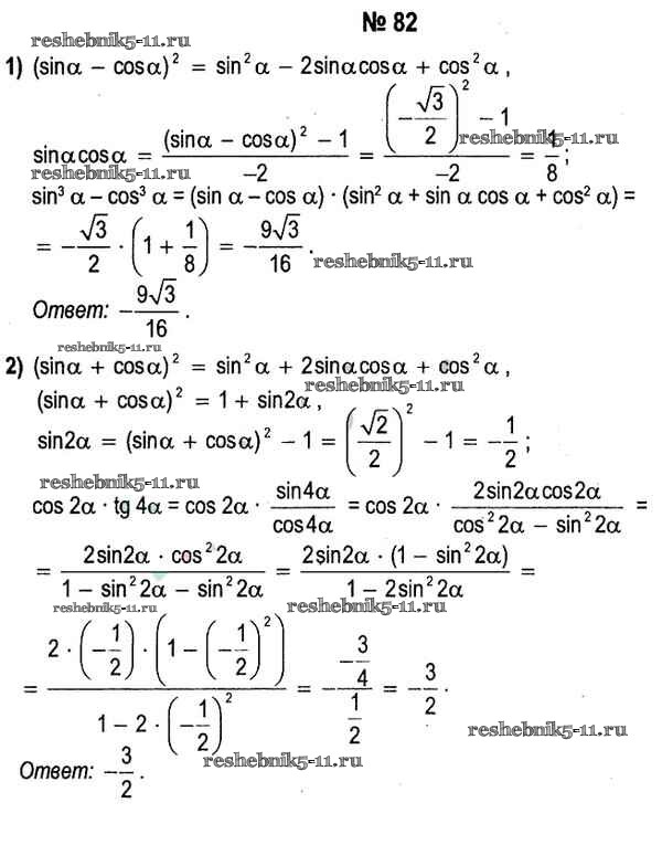 Готовая домашняя работа с ответами по Алгебре за 11 класс Кузнецова, Муравьева, Шнеперман, Ящин Учебник Народная асвета 2015 - Повторение 82