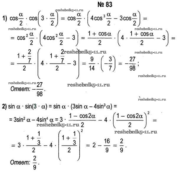 Готовая домашняя работа с ответами по Алгебре за 11 класс Кузнецова, Муравьева, Шнеперман, Ящин Учебник Народная асвета 2015 - Повторение 83