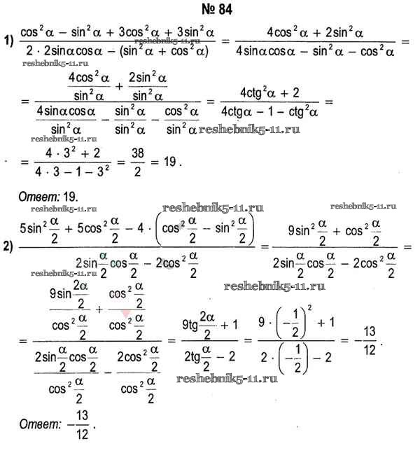 Готовая домашняя работа с ответами по Алгебре за 11 класс Кузнецова, Муравьева, Шнеперман, Ящин Учебник Народная асвета 2015 - Повторение 84
