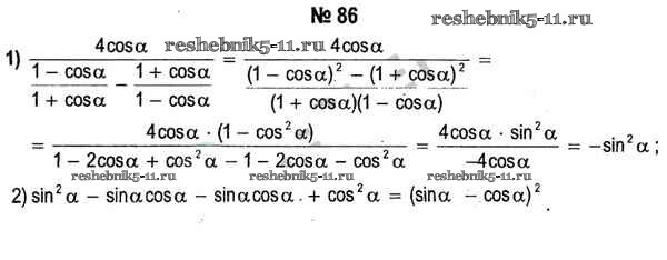 Готовая домашняя работа с ответами по Алгебре за 11 класс Кузнецова, Муравьева, Шнеперман, Ящин Учебник Народная асвета 2015 - Повторение 86