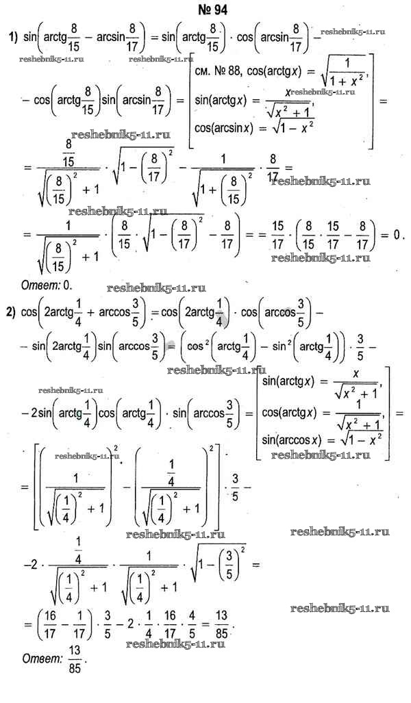 Готовая домашняя работа с ответами по Алгебре за 11 класс Кузнецова, Муравьева, Шнеперман, Ящин Учебник Народная асвета 2015 - Повторение 94