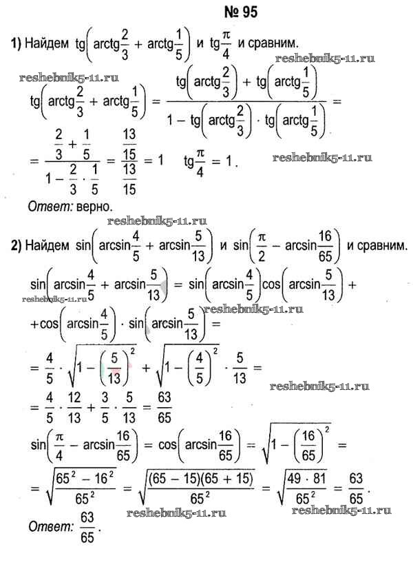 Готовая домашняя работа с ответами по Алгебре за 11 класс Кузнецова, Муравьева, Шнеперман, Ящин Учебник Народная асвета 2015 - Повторение 95