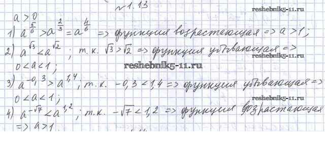 Готовая домашняя работа с ответами по Алгебре за 11 класс Мерзляк, Номировский, Поляков Учебник Алгоритм успеха Углубленный уровень Вентана-граф 2019 ФГОС - §1. Степень с произвольным действительным показателем. Показательная функция 1.13