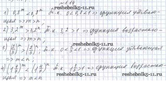 Готовая домашняя работа с ответами по Алгебре за 11 класс Мерзляк, Номировский, Поляков Учебник Алгоритм успеха Углубленный уровень Вентана-граф 2019 ФГОС - §1. Степень с произвольным действительным показателем. Показательная функция 1.14