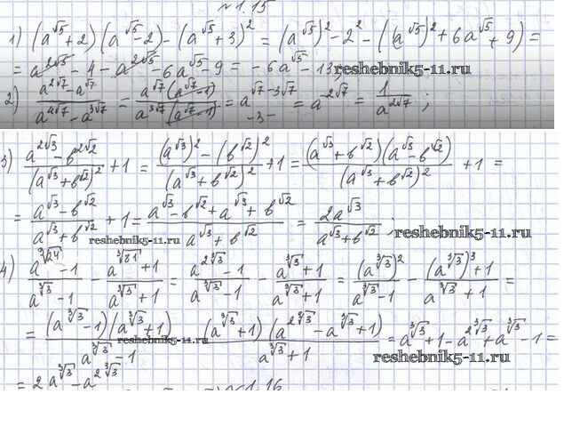 Готовая домашняя работа с ответами по Алгебре за 11 класс Мерзляк, Номировский, Поляков Учебник Алгоритм успеха Углубленный уровень Вентана-граф 2019 ФГОС - §1. Степень с произвольным действительным показателем. Показательная функция 1.15