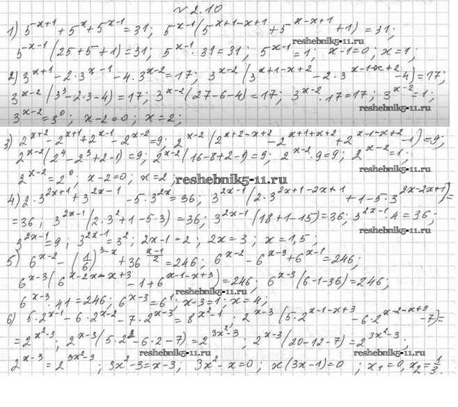 Готовая домашняя работа с ответами по Алгебре за 11 класс Мерзляк, Номировский, Поляков Учебник Алгоритм успеха Углубленный уровень Вентана-граф 2019 ФГОС - §2. Показательные уравнения 2.10