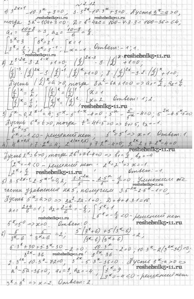 Готовая домашняя работа с ответами по Алгебре за 11 класс Мерзляк, Номировский, Поляков Учебник Алгоритм успеха Углубленный уровень Вентана-граф 2019 ФГОС - §2. Показательные уравнения 2.12