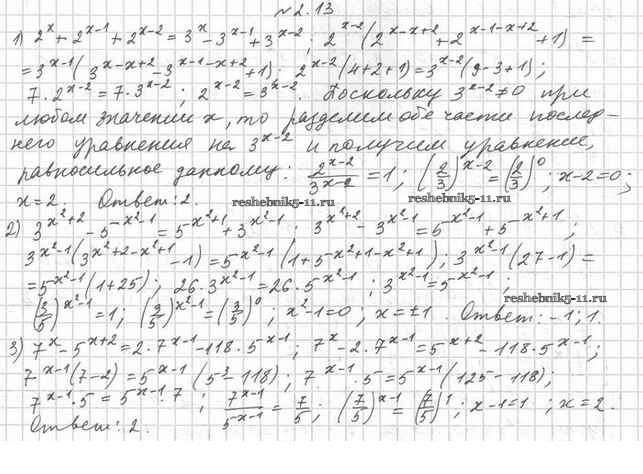 Готовая домашняя работа с ответами по Алгебре за 11 класс Мерзляк, Номировский, Поляков Учебник Алгоритм успеха Углубленный уровень Вентана-граф 2019 ФГОС - §2. Показательные уравнения 2.13