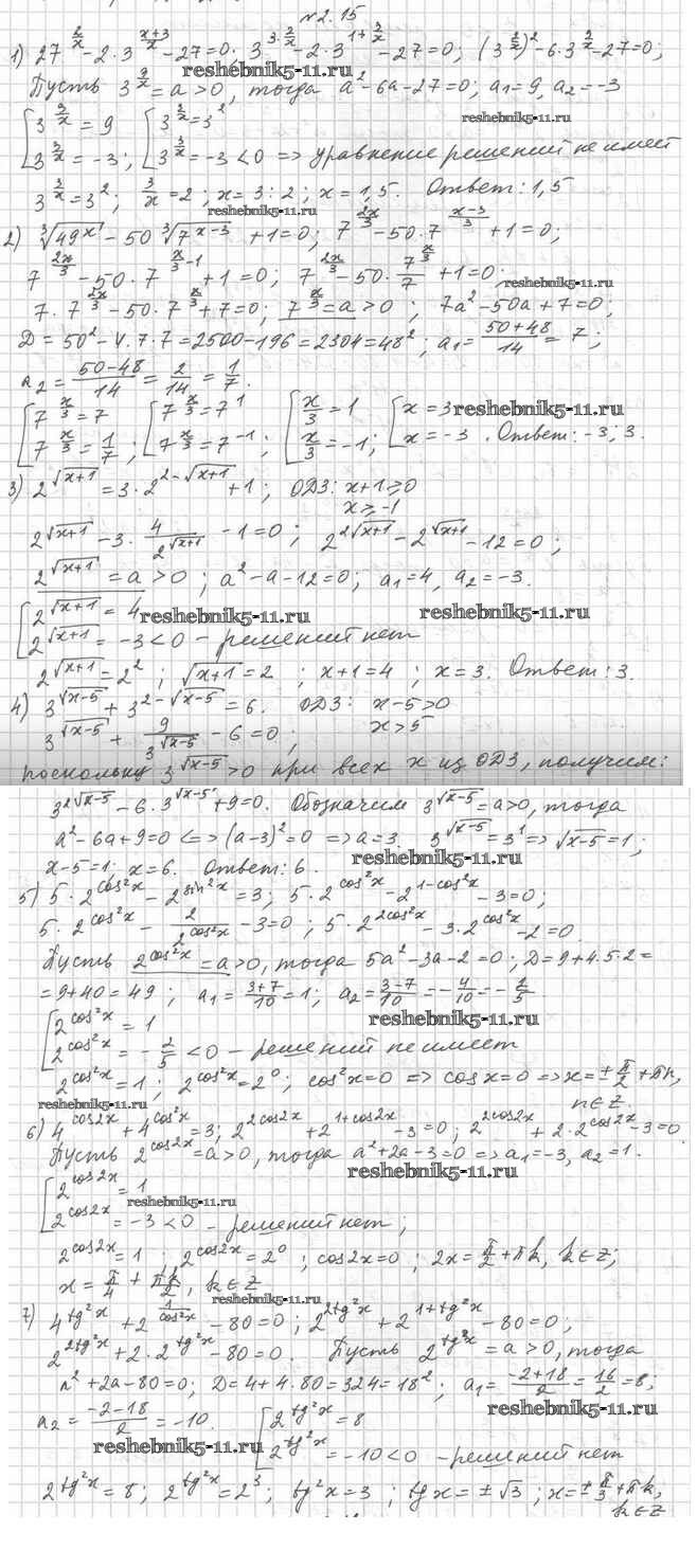 Готовая домашняя работа с ответами по Алгебре за 11 класс Мерзляк, Номировский, Поляков Учебник Алгоритм успеха Углубленный уровень Вентана-граф 2019 ФГОС - §2. Показательные уравнения 2.15