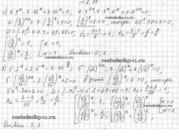 Готовая домашняя работа с ответами по Алгебре за 11 класс Мерзляк, Номировский, Поляков Учебник Алгоритм успеха Углубленный уровень Вентана-граф 2019 ФГОС - §2. Показательные уравнения 2.18