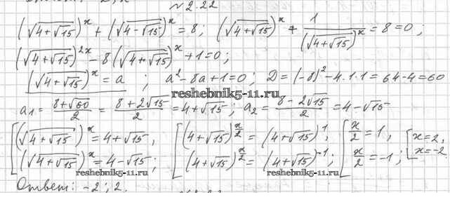 Готовая домашняя работа с ответами по Алгебре за 11 класс Мерзляк, Номировский, Поляков Учебник Алгоритм успеха Углубленный уровень Вентана-граф 2019 ФГОС - §2. Показательные уравнения 2.22