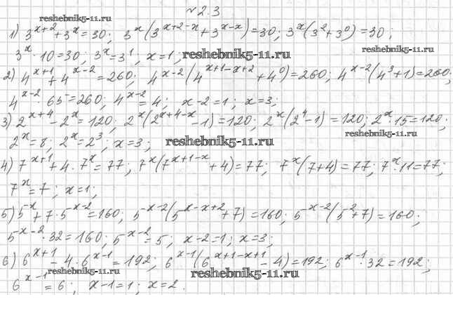 Готовая домашняя работа с ответами по Алгебре за 11 класс Мерзляк, Номировский, Поляков Учебник Алгоритм успеха Углубленный уровень Вентана-граф 2019 ФГОС - §2. Показательные уравнения 2.3