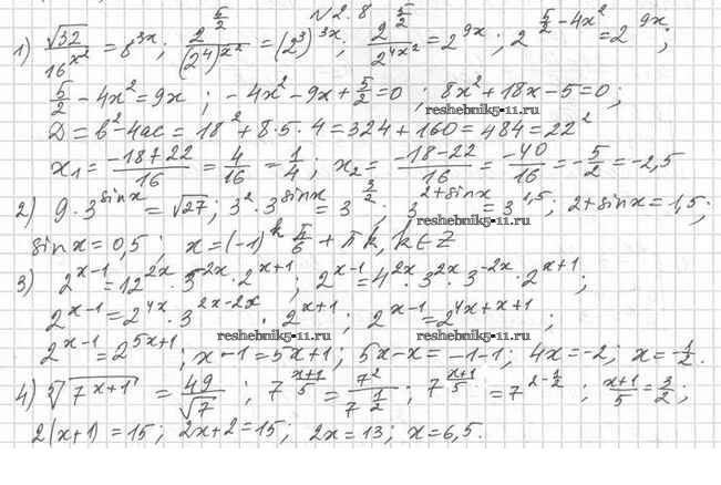 Готовая домашняя работа с ответами по Алгебре за 11 класс Мерзляк, Номировский, Поляков Учебник Алгоритм успеха Углубленный уровень Вентана-граф 2019 ФГОС - §2. Показательные уравнения 2.8