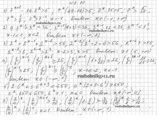 Готовая домашняя работа с ответами по Алгебре за 11 класс Мерзляк, Номировский, Поляков Учебник Алгоритм успеха Углубленный уровень Вентана-граф 2019 ФГОС - §3. Показательные неравенства 3.10