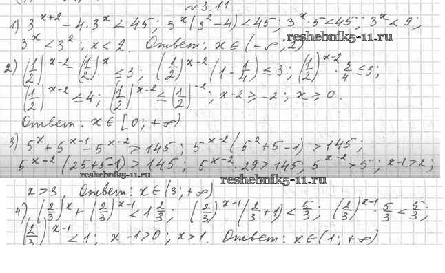 Готовая домашняя работа с ответами по Алгебре за 11 класс Мерзляк, Номировский, Поляков Учебник Алгоритм успеха Углубленный уровень Вентана-граф 2019 ФГОС - §3. Показательные неравенства 3.11