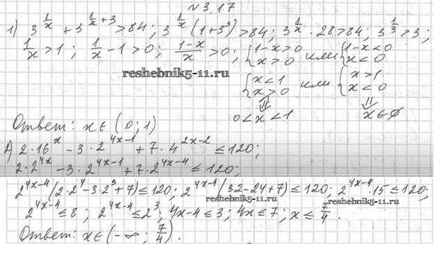 Готовая домашняя работа с ответами по Алгебре за 11 класс Мерзляк, Номировский, Поляков Учебник Алгоритм успеха Углубленный уровень Вентана-граф 2019 ФГОС - §3. Показательные неравенства 3.17