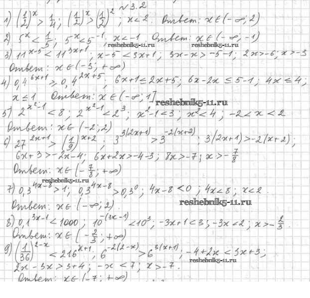 Готовая домашняя работа с ответами по Алгебре за 11 класс Мерзляк, Номировский, Поляков Учебник Алгоритм успеха Углубленный уровень Вентана-граф 2019 ФГОС - §3. Показательные неравенства 3.2
