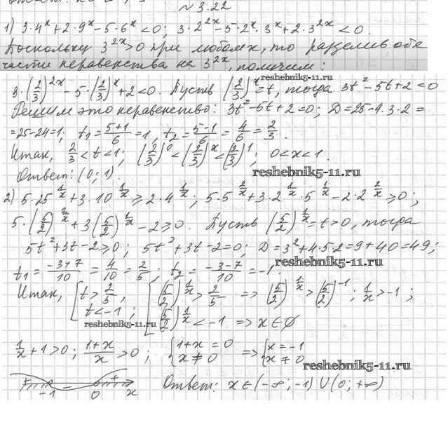 Готовая домашняя работа с ответами по Алгебре за 11 класс Мерзляк, Номировский, Поляков Учебник Алгоритм успеха Углубленный уровень Вентана-граф 2019 ФГОС - §3. Показательные неравенства 3.22