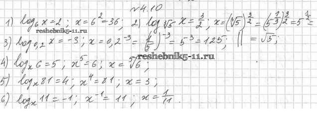 Готовая домашняя работа с ответами по Алгебре за 11 класс Мерзляк, Номировский, Поляков Учебник Алгоритм успеха Углубленный уровень Вентана-граф 2019 ФГОС - §4. Логарифм и его свойства 4.10